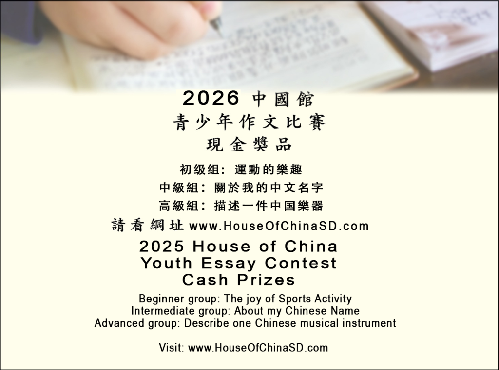 The annual House of China membership lunch meeting is scheduled for Sunday, March 8, 12 noon at the Fellowship Hall of Chinese Community Church, 4998 Via Valarta, San Diego, CA 92124.